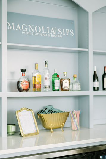 We offer both petite and traditional size wedding packages to accommodate a wide range of budgets. Our guests have the exclusive use of the entire venue grounds starting at 8 am until the end of reception, enjoying our landscaped courtyard with and fountain, fire bowls, lounge seating, and cocktail time for the reception. Bridal parties are able to relax in our Bride and Groom suites, and the Groom and his guests can enjoy our stocked pond, gaming area, fire pit, and pickleball court. In addition, you will find 10 beautiful guest cottages available to rent, a playset for the kiddos, a pool, and the newest addition, Magnolia Sips which is a poolside bar & bistro, perfect for relaxing before or after your big event.